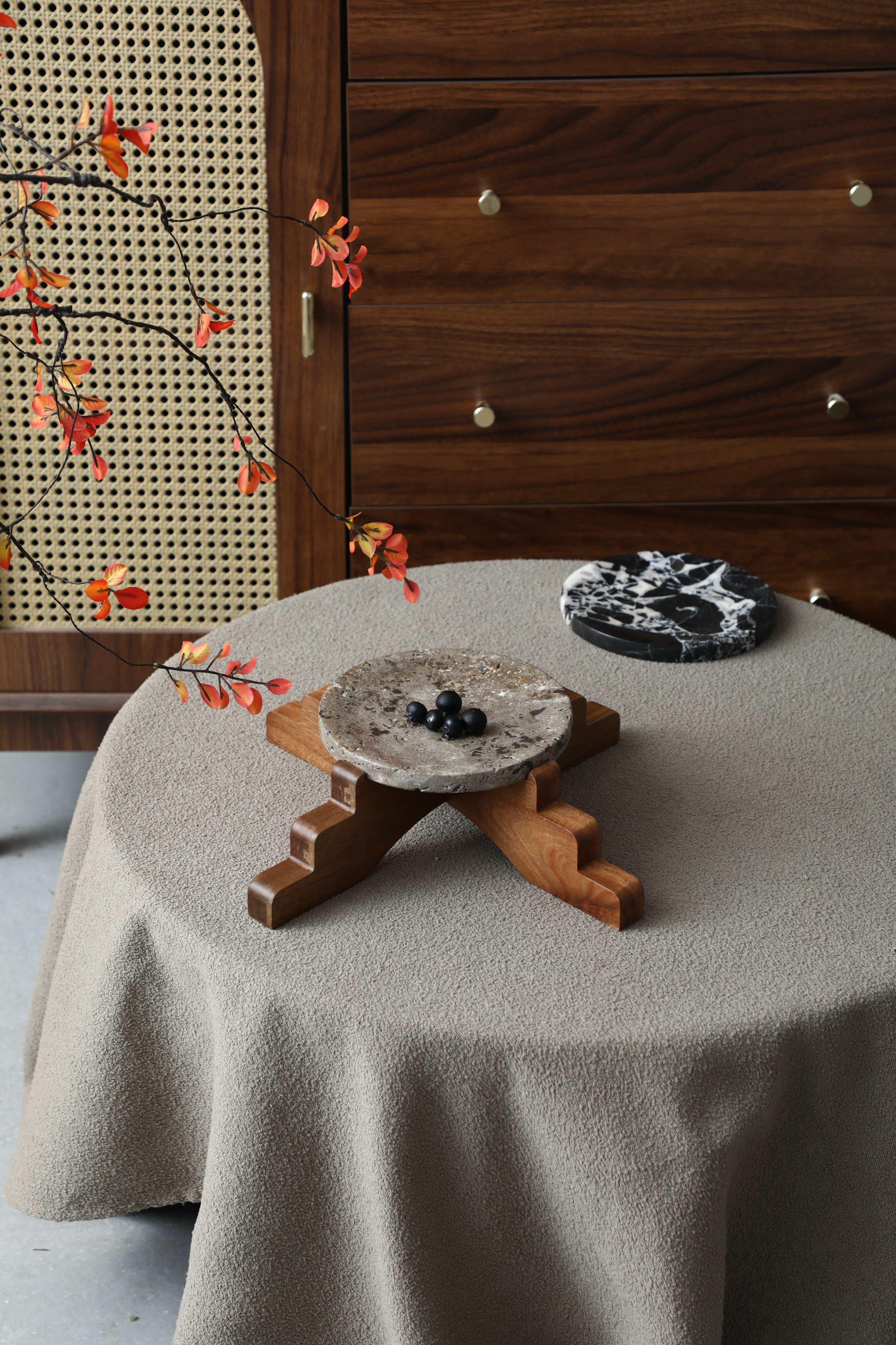 More than a simple tray, The Altar of Tranquility is an invitation to pause. Inspired by ancient ceremonial platforms, this piece is designed to elevate the objects you cherish, creating a sacred focus in your space. It represents the profound harmony between elemental forces: the grounding strength of stone and the warm vitality of wood. This altar is a modern symbol of balance and mindfulness, reminding us to find beauty in the simplicity of nature and the quiet moments of home.