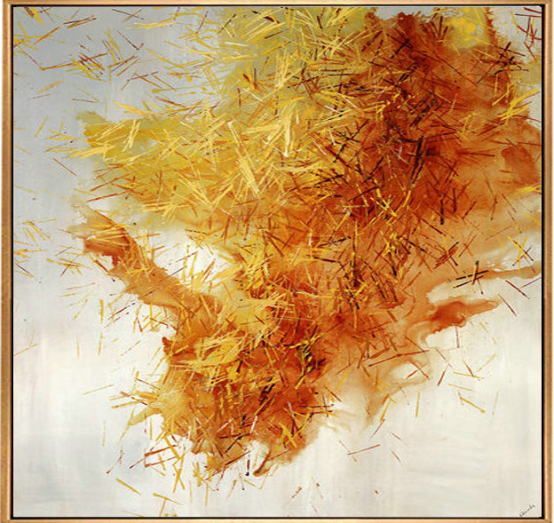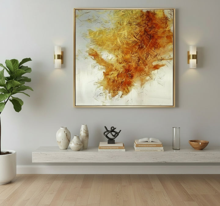 Materials: Premium Canvas with thick, textural gold accents, framed for a gallery finish.
