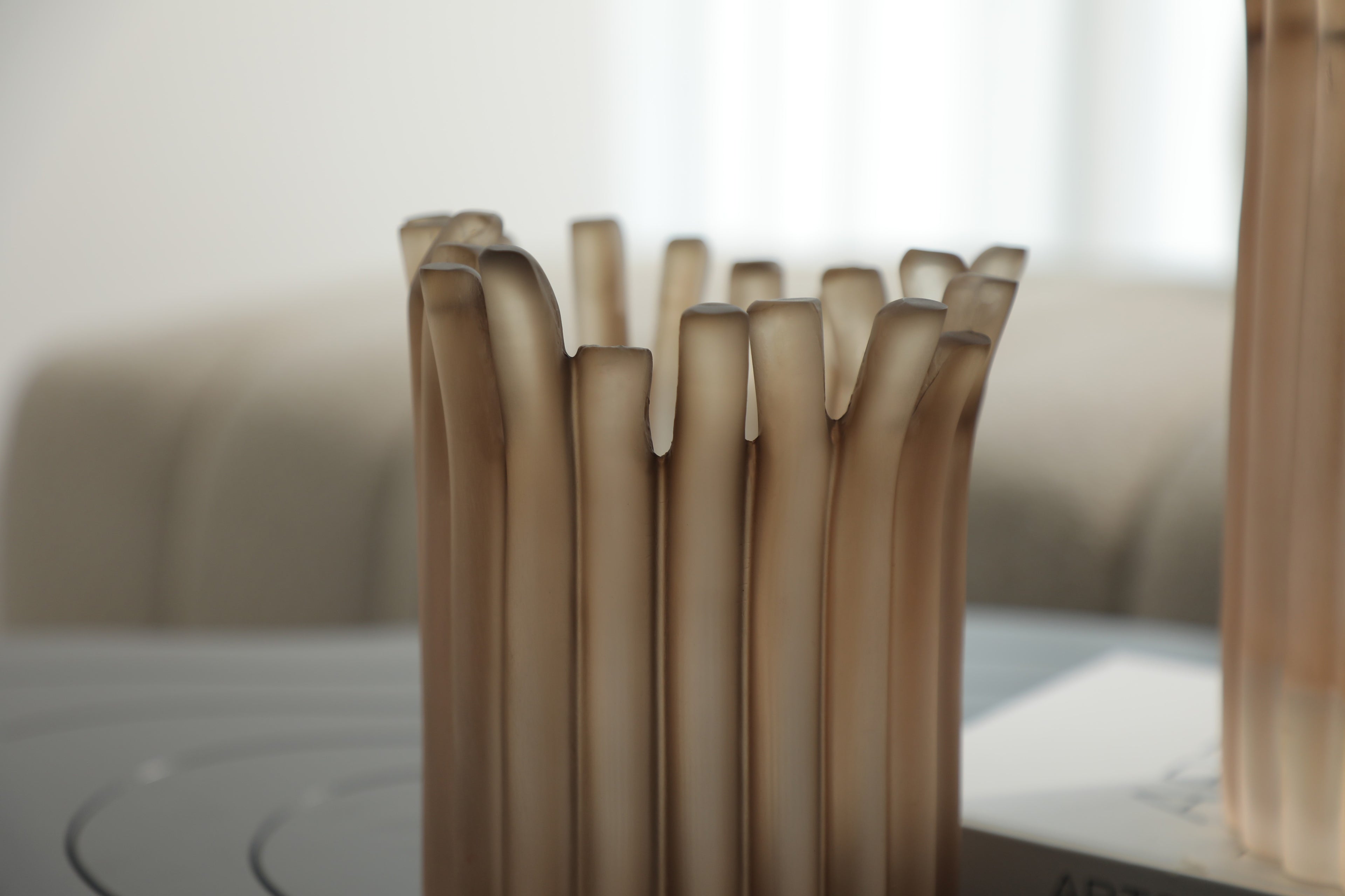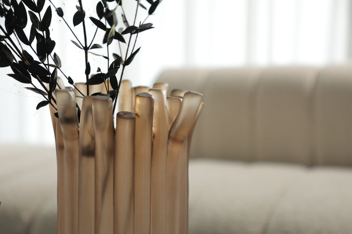 Imagine a cluster of delicate, organically shaped reeds or slender bamboo—that's the magic this piece captures. Each individual column of high-quality resin stands tall and gracefully unique, subtly tapering and curving at the top, just like natural growth. It gives the whole piece this incredible sense of fluid movement and quiet life, even though it's perfectly still.