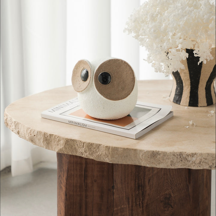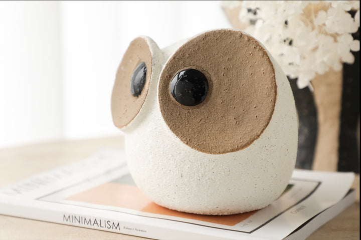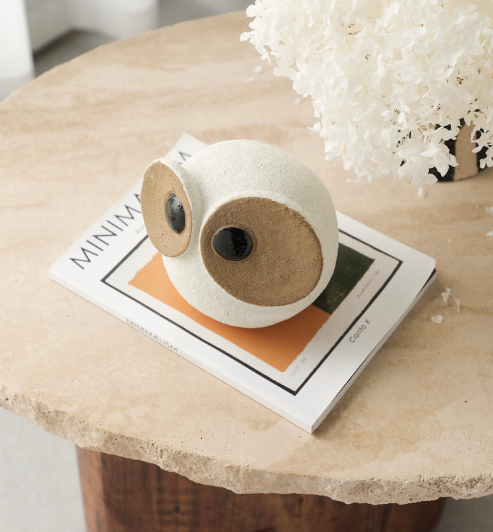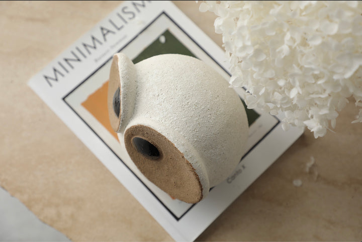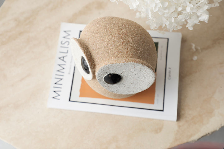 Inspired by the innocent gaze and gentle spirit of a fledgling, the Kindred Owl Ornament is a charming accent of handcrafted warmth. This minimalist sculpture is crafted from ceramic into a soft, rounded silhouette, its body finished in a serene, off-white with a fine, sandy texture. Its endearing character comes to life through its oversized, hand-painted eyes.