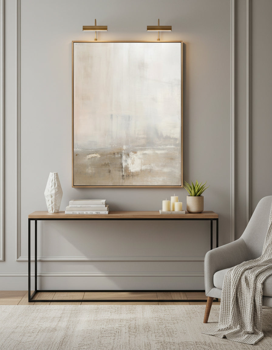 Rising boldly through the center is a thick, impasto stroke of luminous gold. It stands tall and unbroken, a vertical testament to the power of rising above. It suggests that even in the deepest shadows, light does not just exist—it ascends. This handmade piece brings a powerful, grounding energy to a room, serving as a daily reminder of upward momentum and grace under pressure.