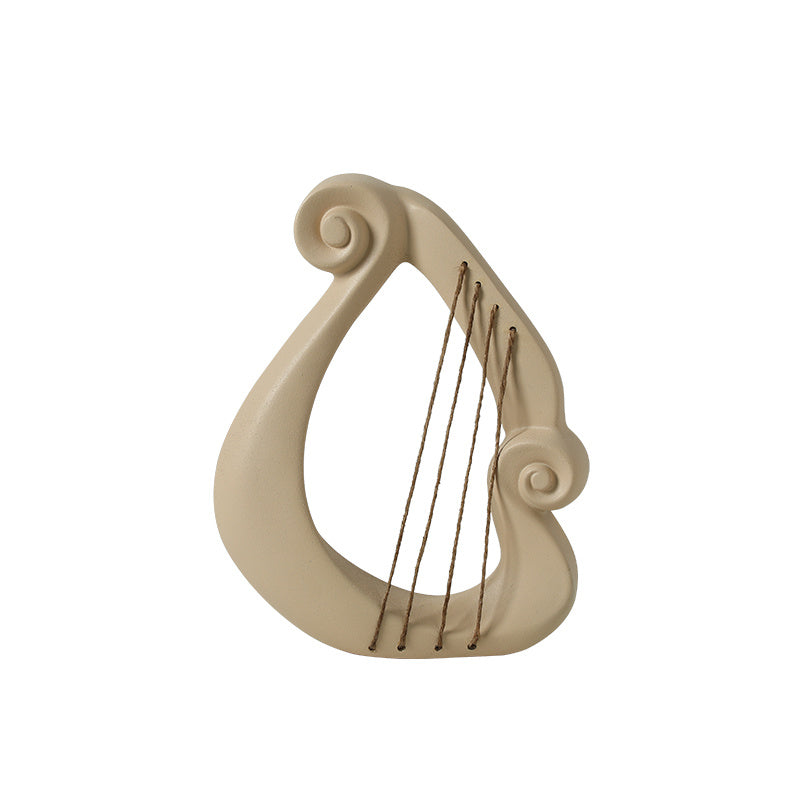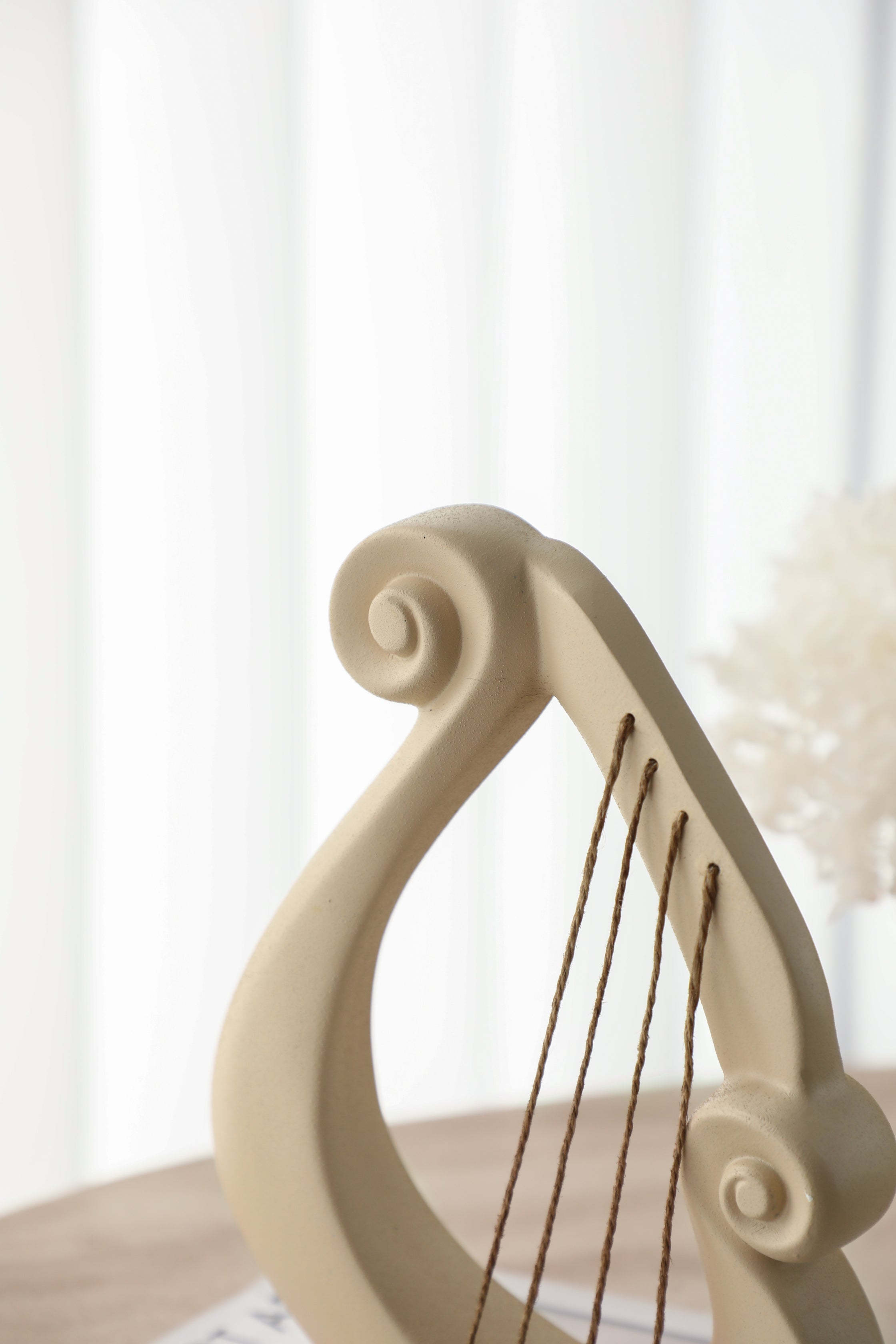 Inspired by the timeless melodies of the ancient muses and the elegant simplicity of classical sculpture, the Muse's Lyre is a small ode to harmony and art. This exquisite ornament is crafted with fluid, modern lines, reinterpreting the iconic stringed instrument with a minimalist's touch. Its gracefully scrolled arms, sculpted from smooth resin in a warm, neutral hue, capture a sense of fluid motion.