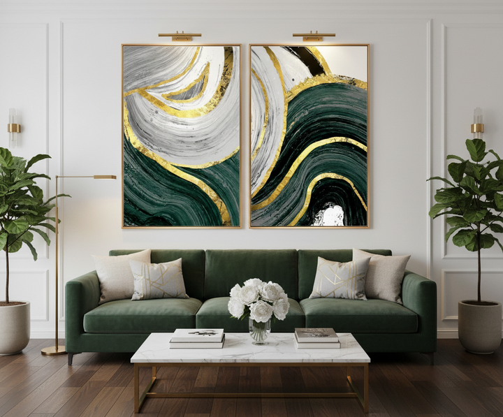 Materials: Heavy Hand-Applied Gold Foil on Premium Canvas, secured by MDF Backing, and framed in a modern PS (Polystyrene) frame.